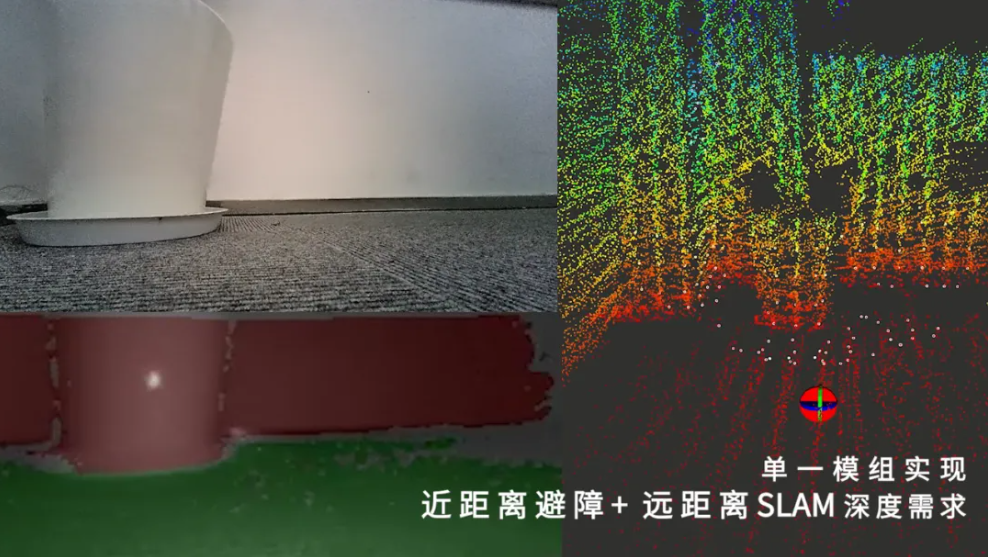 在Nebula 220深度相机内部,光鉴科技通过sToF技术巧妙地将适合近距离感知的结构光和适合中远距离成像的ToF技术结合。通过这两者的协同工作,使机器人通过单一模组就能够完成近距离避障与远距离SLAM深度重建。这种自研的3D视觉感知能力,基于底层的原理性创新,使得机器人在性能和成本上实现了双重突破。