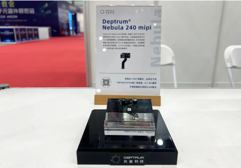 在本届全数会上,光鉴科技带来了多款3D深度相机产品,展示了其在这一领域的卓越技术实力。尤其引人注目的是Nebula 240 mipi深度相机,该相机基于自主研发的sToF算法,结合结构光与ToF深度重建技术,有效弥补了传统ToF技术中的多径干扰缺陷,不仅能够在短距离内捕捉到极高精度的三维数据,还能够在较远距离上进行精准的深度重建,能够为扫地机器人、商用服务机器人等设备提供了更为迅速和准确的视觉感知能力。