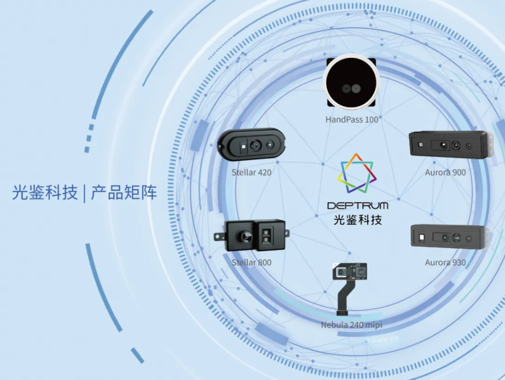凭借其领先的技术创新,光鉴科技已成功推出多款创新产品,构建了以Stellar ToF深度相机系列、Aurora结构光深度相机系列、Nebula sToF深度相机系列、HandPass双模态刷掌相机系列为核心的产品矩阵,实现从底层硬件与算法到上层应用的全栈解决方案,并通过不断推动人工智能、多维视觉融合等技术的创新,进一步加速了各行业的智能化转型。