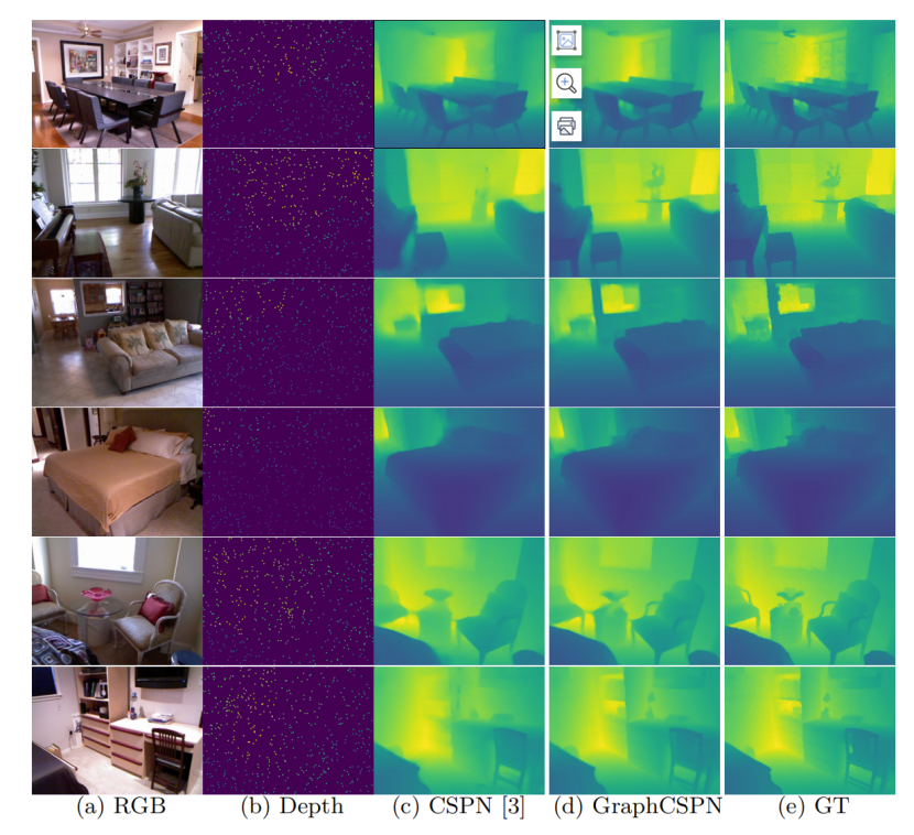 为解决上述痛点,本论文提出了GraphCSPN (Graph Convolution based Spatial Propagation Network),一种基于图卷积的空间传播网络,来完成稀疏深度图的补全。